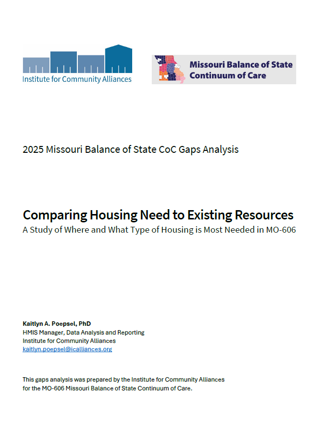 The goal of this Gaps Analysis is to determine what housing resources are needed and where in the Missouri Balance of State (MO BoS) Continuum of Care (CoC) they are needed. Results from this analysis may inform priorities for the annual CoC funding competition.